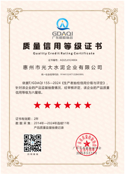 光大水泥榮獲廣東省質(zhì)量信用最高等級(jí)榮譽(yù)證書(shū)[2025-05-16]